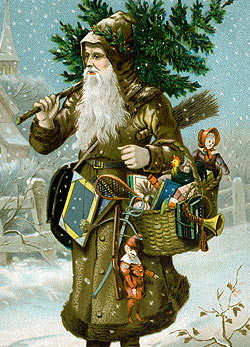Akárhova megy is, mindenütt alkalmazkodik az ottani viszonyokhoz. Falun egyszerű alakban, egyszerű ajándékokkal jelenik meg. Ajtó se nyílik, ablak se zörren, éjszaka mégis besurran a gyermekszobába, vigyáz, hogy a hosszú szakálláról lehulló hó fel ne ébressze az alvókat, nehéz csizmái kopogása meg ne ijessze őket.