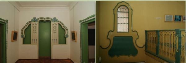 Az épület udvari homlokzata szintén különleges, nagyon szabadon kialakított. A csipkeszerű kerítés mögött a délutáni és alkonyati napsütésben előtűnnek az épület funkcionálisan összehangolt részletei: a lépcsőház függőleges vonalai, a hatszögletű sejtüveggel körülhatárolt apszis, amely az emeleten levő ebédlőt zárja. Az udvar egy kellemes park, ahol a ház lakói és vendégei tartózkodtak. A fény, amely az apszis tarka üvegfalán keresztül az úgynevezett ebédlőbe behatolt, színes tűzijátékként hatott. A mennyezetek és falburkolatok intim hatást keltettek a „hölgyek szobájában” és a „zeneszobában” is.