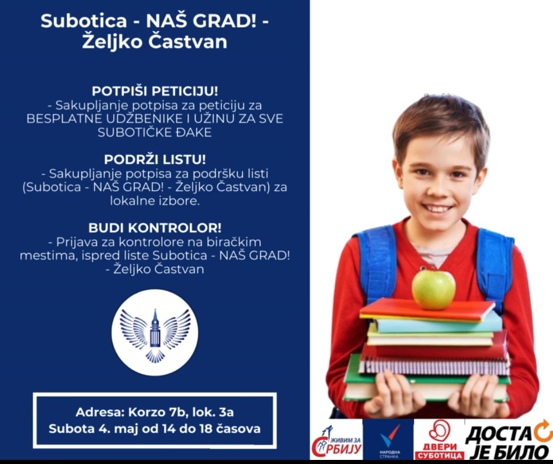Pozivamo građane da nastavimo našu zajedničku bitku za besplatne udžbenike i užinu za sve subotičke đake.