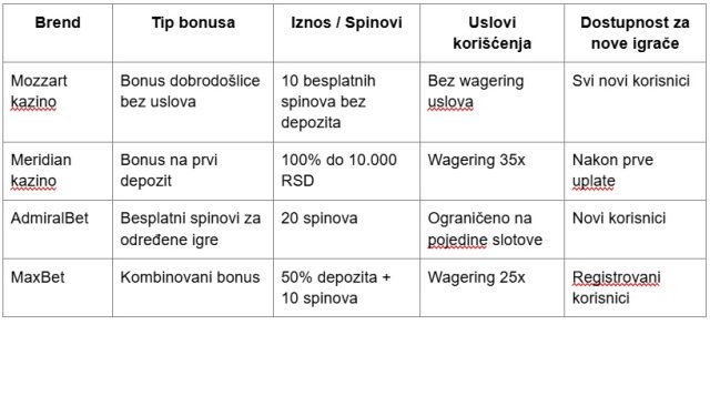 Uporedni prikaz pokazuje da Mozzart nudi najmanje ograničenja u pogledu korišćenja bonusa. Međutim, druge platforme nude veće bonuse uz strože uslove. Ovakva razlika ukazuje na dva modela tržišnog ponašanja: