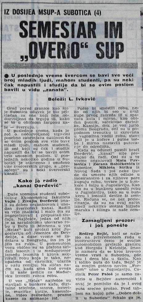 Pre trideset godina, jugoslovenske novine su pisale o hapšenju dvojice švercera iz Subotice. Vest ne bi bila zanimljiva da uz nju nije išao i detalj o „home videu“ na kome su braća kako se kupaju u kadi punoj para.