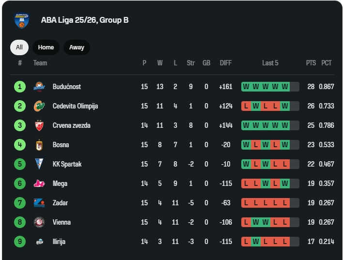 Međutim, treća deonica donela je potpuni preokret. Budućnost je odigrala brutalnu seriju 22:7, zategla odbranu do maksimuma i praktično ugasila napad Spartaka. U poslednjih deset minuta gosti su već imali kontrolu, a meč su rutinski priveli kraju za konačnih 75:66.