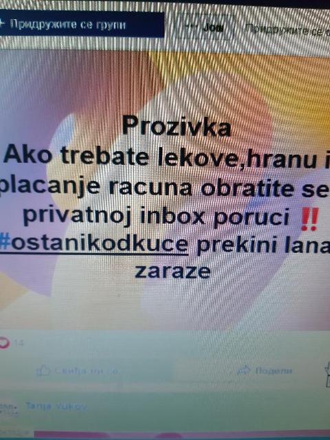 Odmah po objavljivanju vanrednog stanja i novih pravila ponašanja koja nalažu starijim građanima da ostanu kod kuće, naši sugrađani su reagovali i osnovali fejsbuk grupu „Pomoć sugrađanima u karantinu – Subotica“.