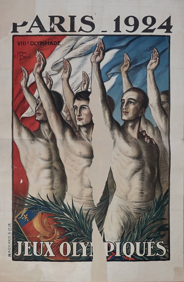 Plakat Olimpijskih igara u Parizu štampana je litografija u boji na papiru. Nastao je 1924. godine, a njegov autor je Žan Droa (Jean Droit, 1884-1961) francuski slikar, ilustrator i pisac, inače autor brojnih plakata i ilustracija u knjigama. Plakat spada u one većih dimenzija koje iznose 79 x 99 cm. Na istorijskom odeljenju se danas čuva u restauriranom stanju, nakon što je pretrpeo ozbiljna oštećenja.