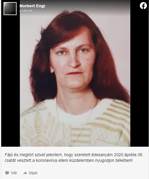 Svi nalazi su pokazivali da je zdrava, umrla je od posledica ovog virusa. Da nije toga živela bi sigurno godinama. Kako je Norbert sa ženom i decom živeo u istom dvorištu sa majkom i ocem Ištvanom, cela porodica je u karantinu. Dodatni bol za porodicu je što, zbog epidemije, ne može dostojno da je isprati do večne kuće.