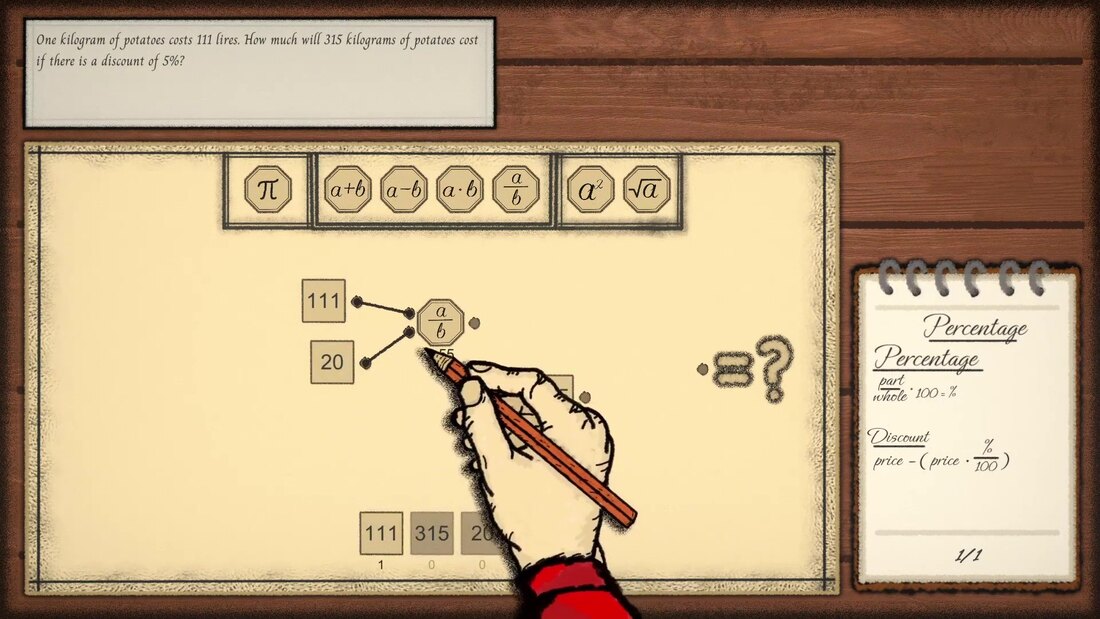 Igrica u kojoj se rešavanjem matematičkih zadataka prikupljaju poeni za kupovinu formula potrebnih za naredni nivo grafički je smeštena u davna vremena, a izrađena je tako da se može igrati i protiv drugih matematičara. Zanimljivo je da su u kreiranju učenici delom koristili i veštačku inteligenciju.