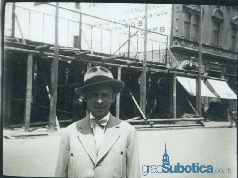 Gospodin u sesiru i sa leptir masnom ispred gradilista Nicin palate bi mozda mogao biti licno projektant tog gradjevinskog objekta. Koliko zanam projektant Nicin palate se je prezivao Bede. Moguce da ima jos njegovih potomaka u Subotici, pa bi onda mogli nesto pouzdanije da saznamo o osobi sa slike, a mozda cak i o autoru fotografije.