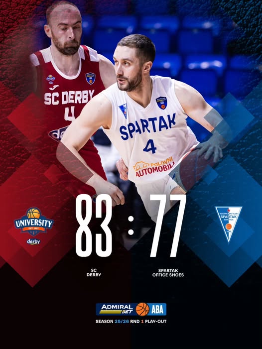Košarkaši Spartaka iz Subotice poraženi su večeras u Podgorici od ekipe Studentskog centra rezultatom 83:77 (16:16, 21:23, 23:12, 23:26) u meču prvog kola plej-auta ABA lige.