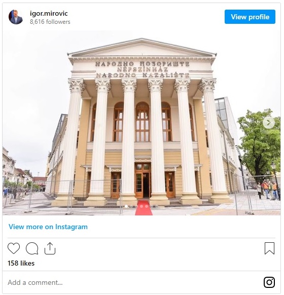 Igor Mirović, predsednik Pokrajinske vlade, objavio je na svom Instagram nalogu da su radovi na rekonstrukciji Narodnog pozorišta u Subotici završeni.