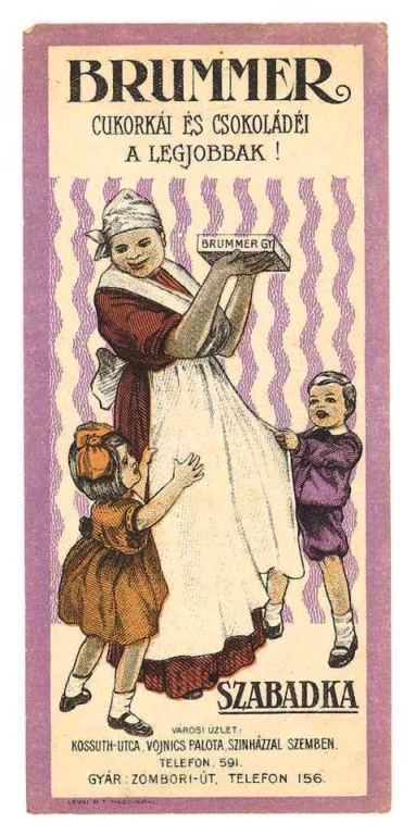Najbolje bombone i čokolade su kod Brummera – reklamirala se pre jednog veka „Prva tvornica bombona i čokolade“ iz Subotice. Pogon na Somborskom putu i lokal na korzou, ispod Vojnić palate vodio je Julije (Đula) Brummer a pred Drugi svetski rat njegov sin Mirko. Na slici se vidi natpis iznad radnje u oktobru 1944. godine, kada su partizani ušli u grad. Za Brumerove je bilo prekasno. Već su bili odvedeni u smrt, zbog svog jevrejskog porekla.