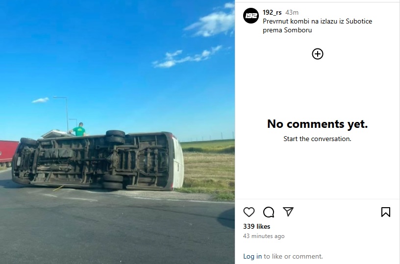 Na izlazu iz Subotice prema Somboru došlo je do saobraćajne nezgode, kada se prevrnuo kombi.