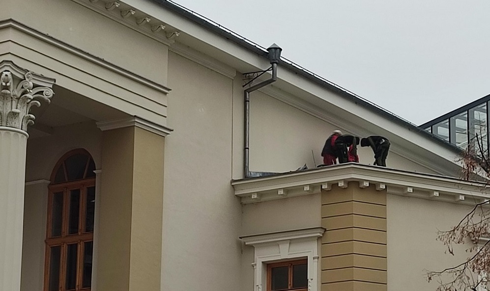 Kakav je to hitan posao morao da se odradi, pa su svoj neradni dan radnici juče morali da provedu na krovu Narodnog pozorišta u Subotici? To je isto ono pozorište na kojem su, kako je to izjavio gradonačelnik Subotice Stevan Bakić, radovi okončani 22. aprila.