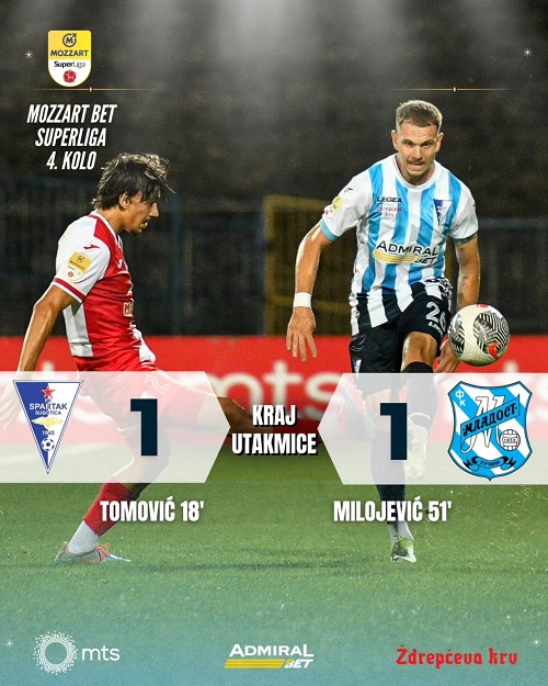 Spartak je na najbolji mogući način otvorio meč, pogotkom Stefana Tomovića u 18. minutu kada je iskoristio dodavanje Babića i savladao nemoćnog Stamenkovića.