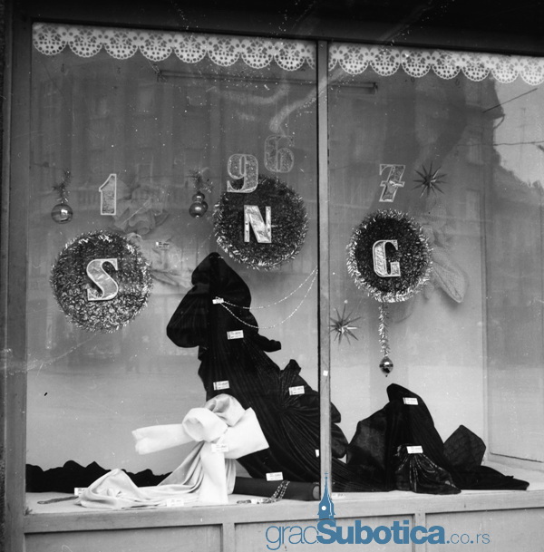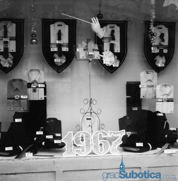 SNG 1967. (izlog prodavnice NA MA na Trgu Slobode, ispod Gradske kuće)