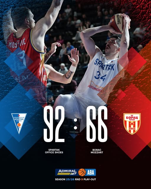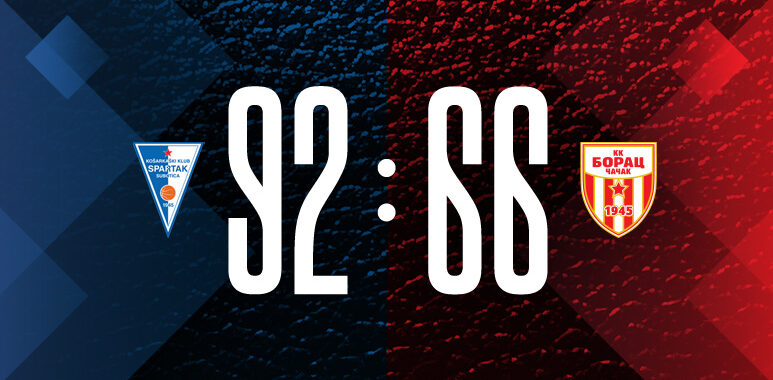 Košarkaši Spartaka su pobedom nad Borcem iz Čačka – 92:66, obezbedili prvo mesto u plej-aut fazi takmičenja, pa će u prvoj rundi nokaut faze imati prednost domaćeg parketa. U poslednjem kolu, Spartak gostuje ekipi Splita.