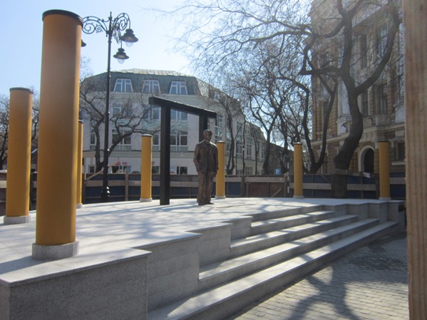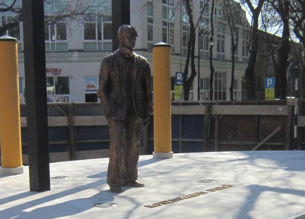 ja ne razumem potrebu da se 20 metara od biste KD postavlja i spomenik isto čoveku, no dobro, ako se nisu mogli setiti nikog drugog ko bi se tu mogao naći, u redu, a cela instalacija je jednostavno ružna, preglomazna, sa onim crnim stubovima i gredom iza spomenika i žutim stubovima okolo, ispod elementarnog estetskog i umetničkog nivoa
