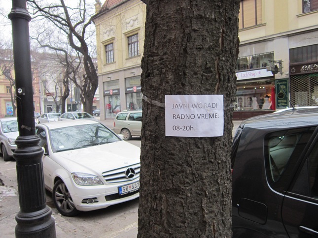 Tehnički direktor Direkcije za izgradnju grada, Jasmin Šečić, je izjavio da u Subotici postoje tri javna zahoda: jedan pored gradske kuće, jedan kod Sinagoge i jedan u ulici Matije Gubeca, ali ovaj treći je u potpuno neupotrebljivom stanju.