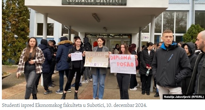 Subotički studenti Ekonomskog fakulteta blokirali su u utorak ujutru fakultet i pridružili su se svojim kolegama iz drugih gradova u protestima.
