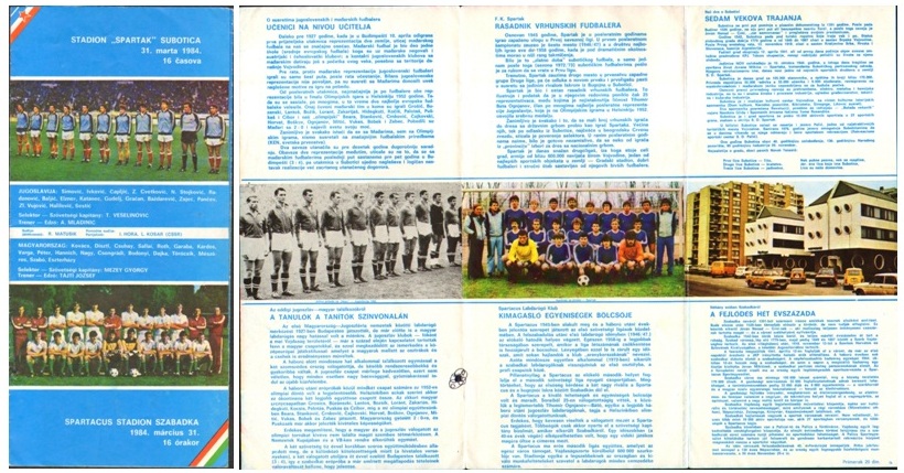 Program za utakmicu Jugoslavija – Mađarska 31. marta 1984. godine na Gradskom stadionu