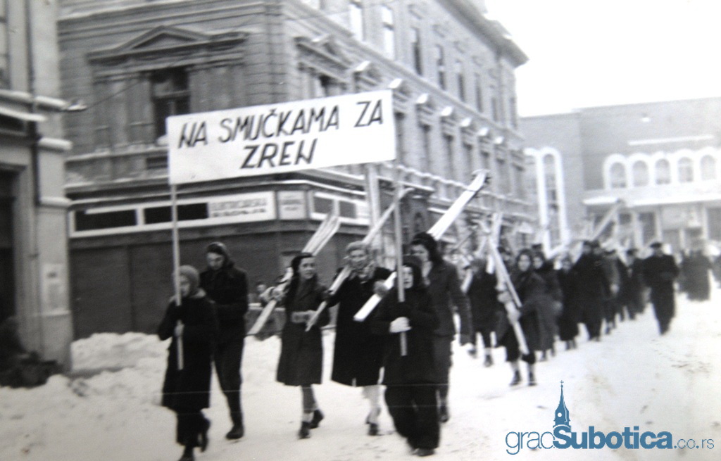Teško je Suboticu dovesti u vezu sa ovim sportom, međutim, na fotografiji iz 1947. godine jasno se vidi da je družina na subotičkom korzou krenula na skijanje.