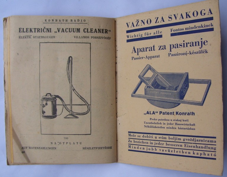 Stari katalozi subotičkih trgovina i firmi pokazuju da su neki aparati i patenti već bili u ponudi. Verovatno preskupi za običan svet. Samo za građane koji su živeli u stanovima kao što je, recimo, ovaj.